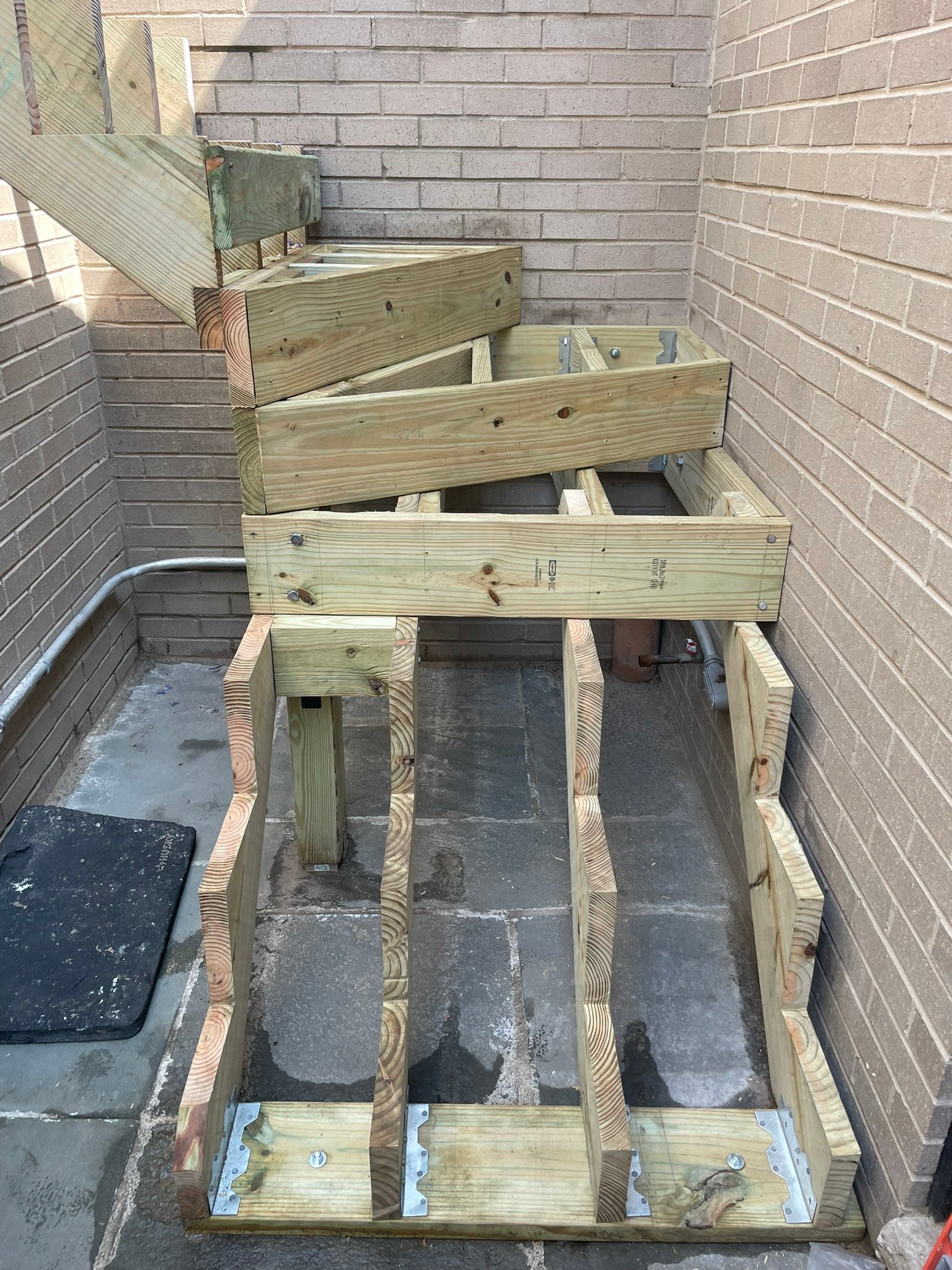 Exterior stairs take more abuse than flat deck surfaces. In this case, the stair structure was rebuilt to ensure: